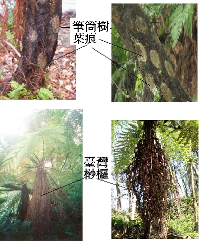如何分辨筆筒樹和臺灣桫欏 筆筒樹和臺灣桫欏外型很像,很容易搞錯,其實分辨它們的方法很簡單,筆筒樹的老葉子會掉下來,所以會留下一圈一圈像蛇皮紋路的痕跡,所以筆筒樹又叫蛇木。而臺灣桫欏的老葉子會垂掉下來掛在它的樹幹上,就好像穿了裙子一樣,就算它掉下了也不會留下痕跡,但它們兩種都是蕨類。